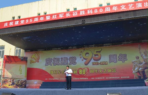 为庆祝中国共产党成立95周年暨红军长征胜利80周年6月27日,我县在体育广场成功举办庆祝中国共产党成立95周年暨红军长征胜利80周年文艺演出。县委常委、组织部长、统战部长闫峰出席活动并致辞。