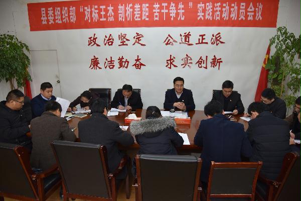 1月24日,金乡县委组织部召开“对标王杰 剖析差距 苦干争先”实践活动动员会议,深入贯彻落实全县实践活动推进会议精神,对部机关开展实践活动进行安排部署。县委常委、组织部长闫峰参加会议并作动员讲话,部机关全体党员干部参加会议。